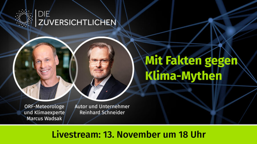 In der nächsten Ausgabe der Zuversichtlichen sprechen Reinhard Schneider, Autor und Unternehmer, und Marcus Wadsak, der bekannte österreichische ORF-Meteorologe und Klimaexperte, wie wir mit Fakten gegen Desinformation antreten können.